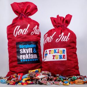 Nu kan du köpa julsäckar till företag online här i vår webbshop! Fina julsäckar välfyllda med det bästa julgodiset, det gör de allra flesta riktigt nöjda, även de mest kräsna. Givetvis finns våra julsäckar i olika storlekar och utföranden så att de ska kunna täcka de flestas behov men en sak har alla julsäckar gemensamt, vilket är att både det yttre såväl som det inre är av högsta kvalitet.